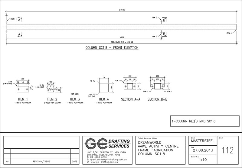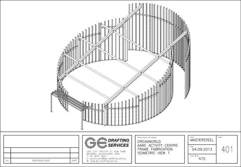 Steel Fabrication Shop Drawings for Dreamworld Theme Park Aboriginal Activity Centre - Gold Coast, QLD