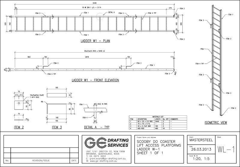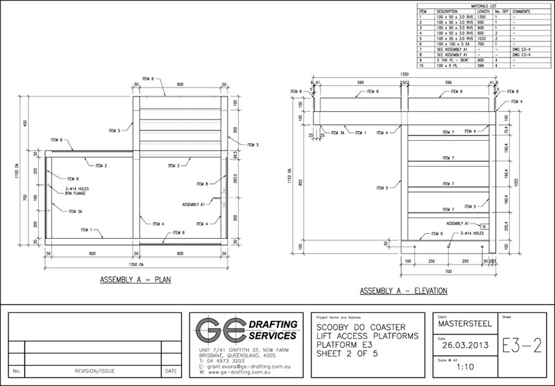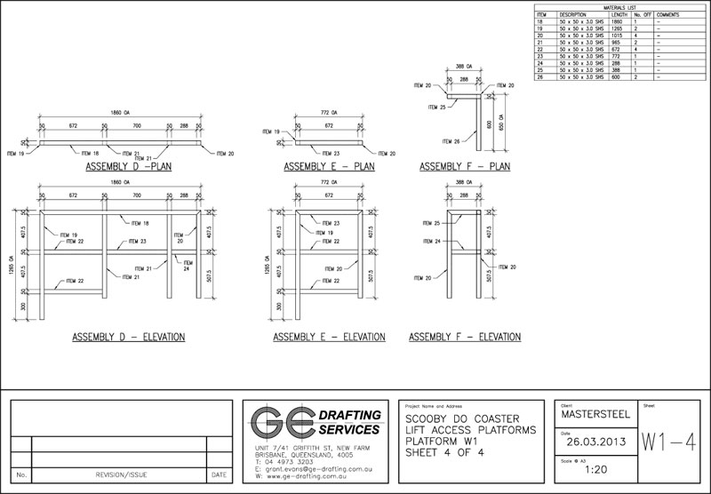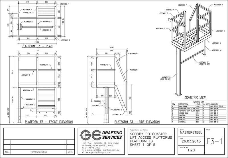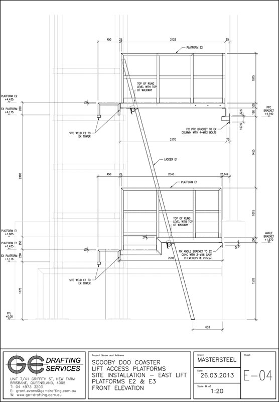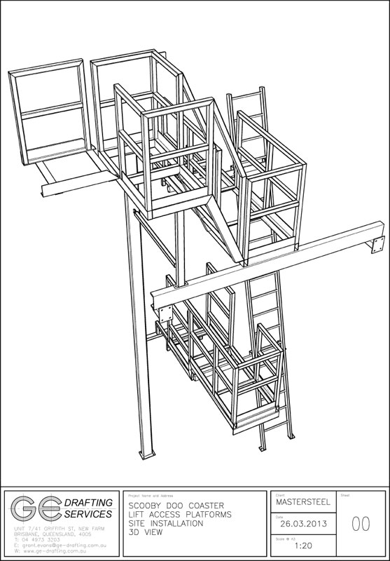 Steel Fabrication Shop Drawings for Proposed Access Platforms - Scooby Doo Rollercoaster, Movieworld, Brisbane