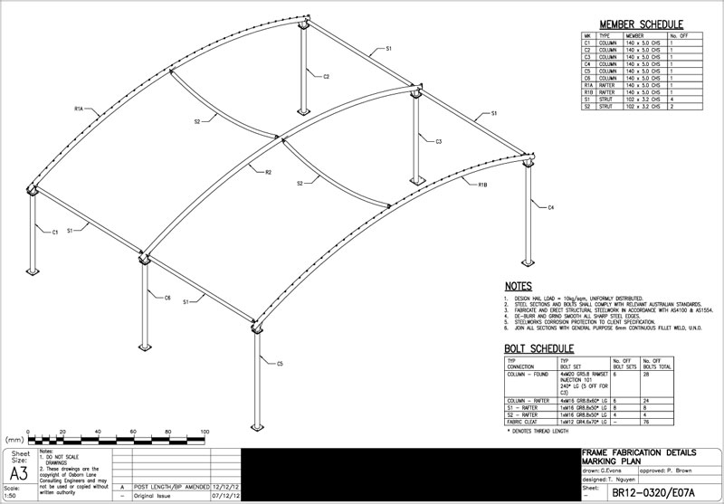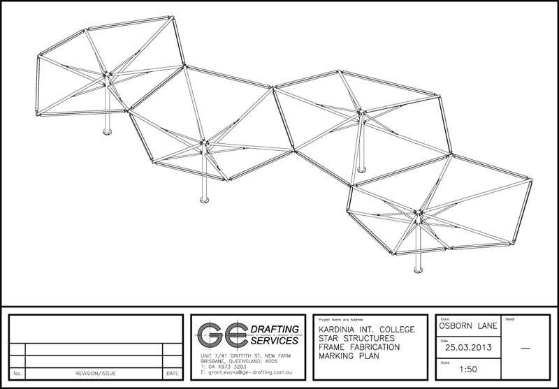 Steel Fabrication Shop Drawings for Complex Shade Sail Structure - Kardinia College, Melbourne
